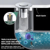 Нов дизайн:Дизайнът на изскачащия дренажен филтър преобръща традиционните и неудобни методи за отводняване (като основна тапа с верига)!Можете да превключвате между двата режима, тапа (съхранение на вода) и филтър (отводняване на вода), само чрез леко натискане на горния капак.